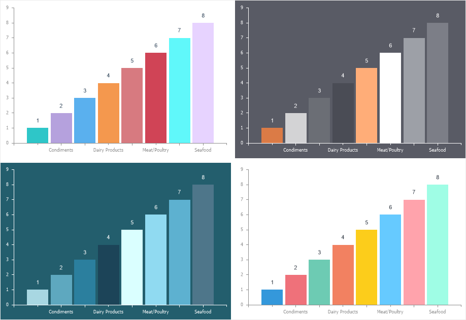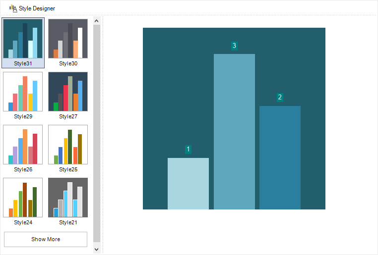 When designing reports with charts, more than 30 built-in styles are available for this component. You can change the Chart component style by: