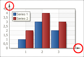 Each axis has its own direction. The direction is identified with marker (usually it is an arrow). To change the arrow style, use the Arrow Style property of an axis. The path to this property is Area.Axes.ArrowStyle. On the picture below the sample of a rendered chart with the ArrowStyle property set to the None default value: