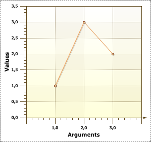 The Title property is a title of axis. This property is used to display an axis title. Moreover, the Title property for each axis is given separately. The picture below shows a chart where the X axis is called the “Arguments”, and the axis Y is called “Values”: