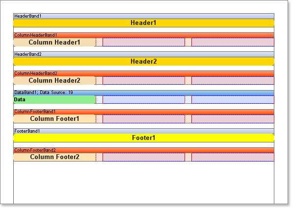 To see this in action create a report using multiple Header bands, Footer bands, Column Header bands, Column Footer bands and just one Data band at a random order.