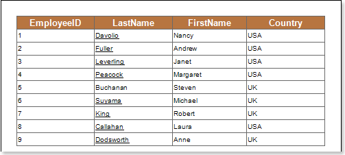 As can be seen in the picture above, lines of text components of the FirstName column which starts with the Nancy word are underlined.