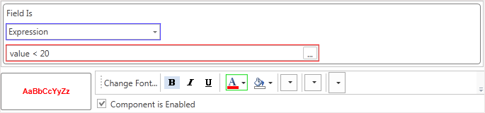 Change the value of the Field Is field on the Expression (marked with blue). Specify the required expression (marked with red):