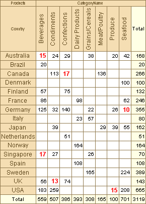 Often, when rendering a cross table, it is necessary that, according to certain conditions, the appearance of a cell will be changed. To achieve this, you can use the Conditions property of columns, rows and, summary cells.