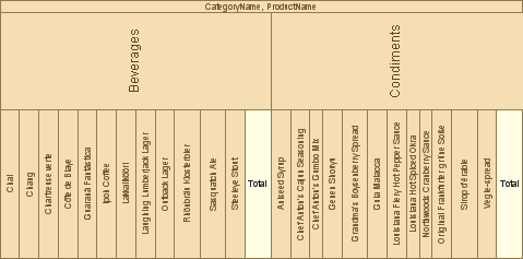Grouping is output by values of two columns. Values of the first column are output first. Then the value from the second column is output: