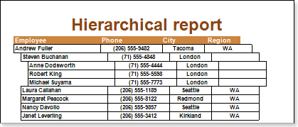 The Hierarchical band is used to display report data as a tree. The picture below shows an example of a hierarchical report: