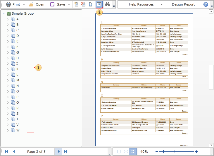 Bookmarks are used to show the structure of a report. Also, bookmarks are used to mark the component to refer to it using hyperlinks. All components have the Interaction.Bookmark property. The expression, specified in this property, is set to BookmarkValue property. Setting occurs when the report is rendering. This property is invisible in the Properties panel, but it can be called from the report code or refer to it from the expression. Before showing a report in the window of preview, Stimulsoft Reports views all components of a rendered report and logs a tree of bookmarks.