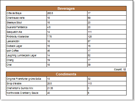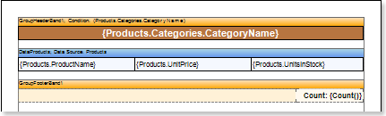 Sometimes you need to show a report in a compact form. In Stimulsoft Reports you can find the ability to dynamically collapse information in the preview window. A report with dynamic collapsing is an interactive report, in which collapsing blocks can expand/collapse its contents clicking the block title. Dynamic collapsing is usually used in reports with grouping, Master-Detail, hierarchical reports. Dynamic collapsing can be multilevel. Consider an example of using dynamic collapsing in the report. Let’s have a report that contains a list of products that are grouped by category. The picture below schematically showed the report with a multilevel collapsing: