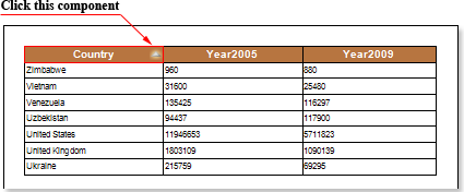 In Stimulsoft Reports it is possible to use dynamic sorting. Dynamic sorting provides the ability to change the sorting direction in the report. Sorting the data can be performed both on a single data column as well as in several ones. Set the Interaction.Sorting Enabled property of the component, by clicking on which the dynamic sorting by one column will be enabled, to true and change the value of the Interaction.Sorting Column property. The value of this property is the data column, by which dynamic sorting will be done. It should be noted you can specify only one data column for one component. Then, select the component to which dynamic sorting was set. Dynamic sorting is carried out in the following directions: Ascending and Descending. Each time you click the component, the direction is reversed. The picture below shows a report page with dynamic sorting: