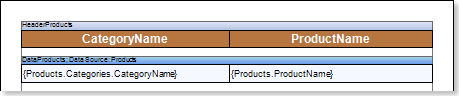 If you need to sort by multiple columns simultaneously, it can be done by pressing the Control button. Consider the following example. Suppose there is a report that contains the names of categories and a list of products. The picture below shows the report template: