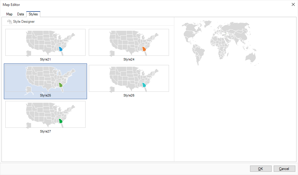 On this tab you can set the map style. There are some preset styles and custom styles in style designer: