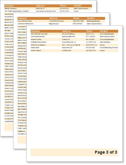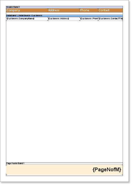 The Page Footer band is used to output information such as page numbers, dates, and company information at the bottom of a page. The Page Footer band is output at the bottom of every page of the report. An unlimited number of Page Footer bands can be placed on a page.