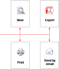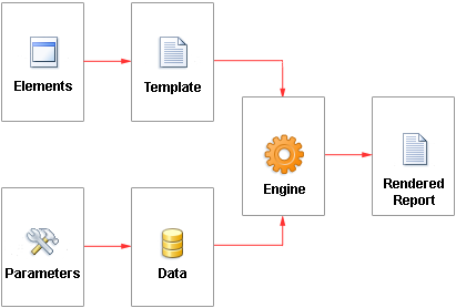 The report is a way of representing data in printed form and in a user-defined format. Any report, before rendering, serves as a report template. The report template is an element created by the report writer, following the rules set to designer for building a report. Elements refer to objects in the designer, while parameters are settings within the report designer. The picture below depicts a diagram illustrating the construction of the report.