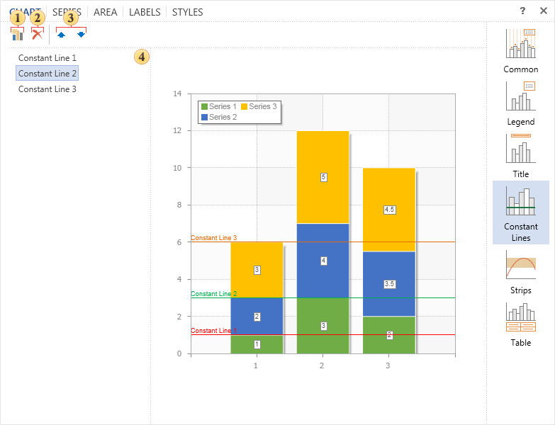 It should be noted that in some groups you can add elements to the chart. In this tab, this note concerns groups Constant Lines and Strips.
