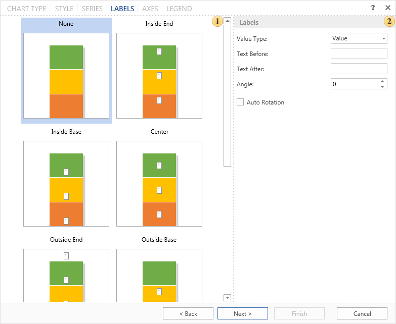 On the next step, it is necessary to define the look of labels in the chart. By default, labels are disabled.