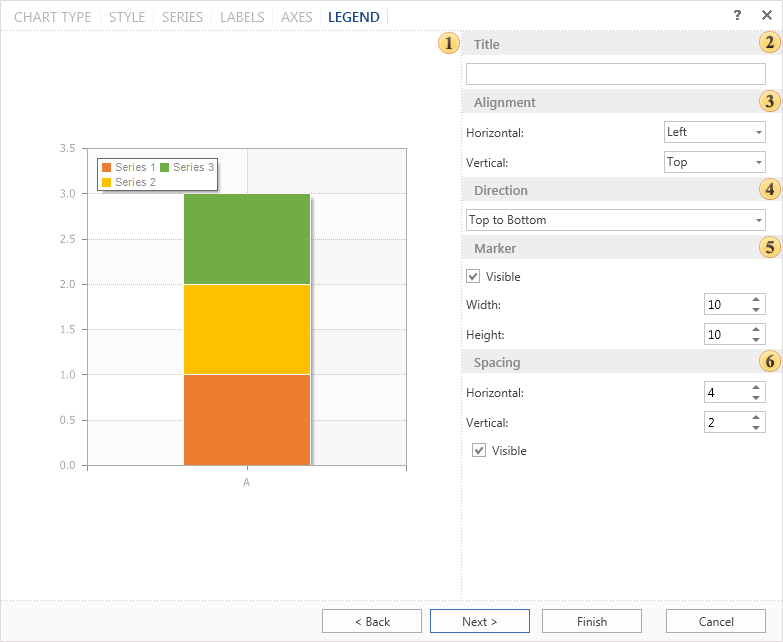 In the last step you need to define parameters of the chart legend. Legend is an area that displays the symbols of different data series in the chart.