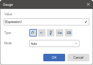 The configuration of a gauge is performed in its editor. The gauge editor in reports can be: