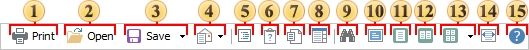 The main toolbar locates commands to control the report. Below is the structure of the toolbar with the description of each command.