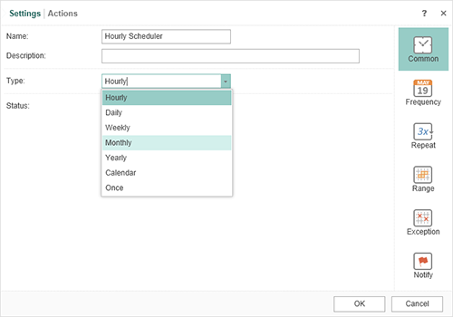 In the Stimulsoft Server interface the type of a scheduler is set as follows: