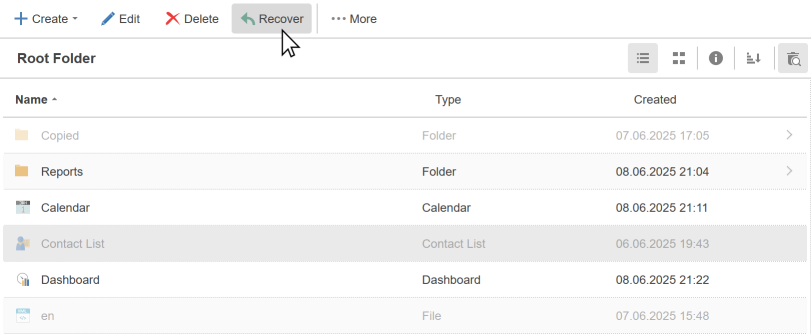 The item will be restored to the folder from which it was deleted. It is also possible to restore several items at once if you select them simultaneously (using the Ctrl or Shift buttons). It is important to understand that: