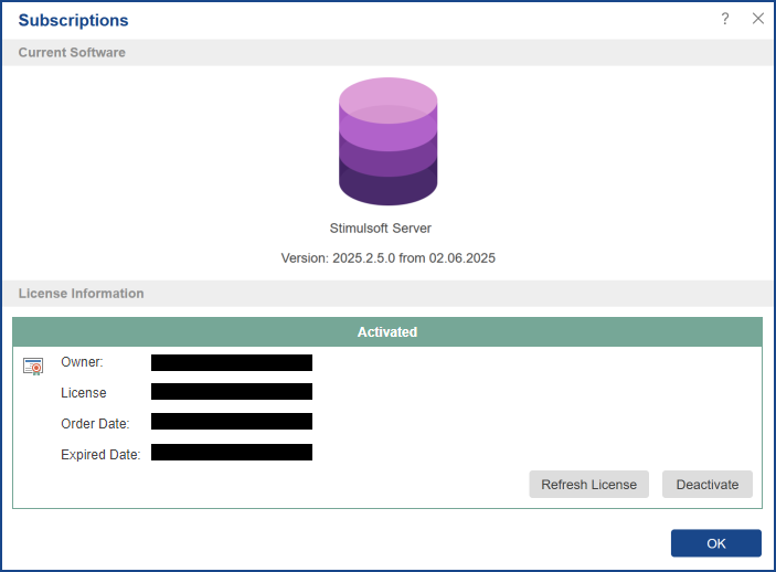 There are also buttons Refresh License and Deactivate. When clicked, they will respectively update the license validity period or deactivate the license.