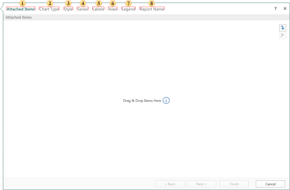 Creating a report with chart using the wizard includes 8 steps. Not all of them are mandatory.