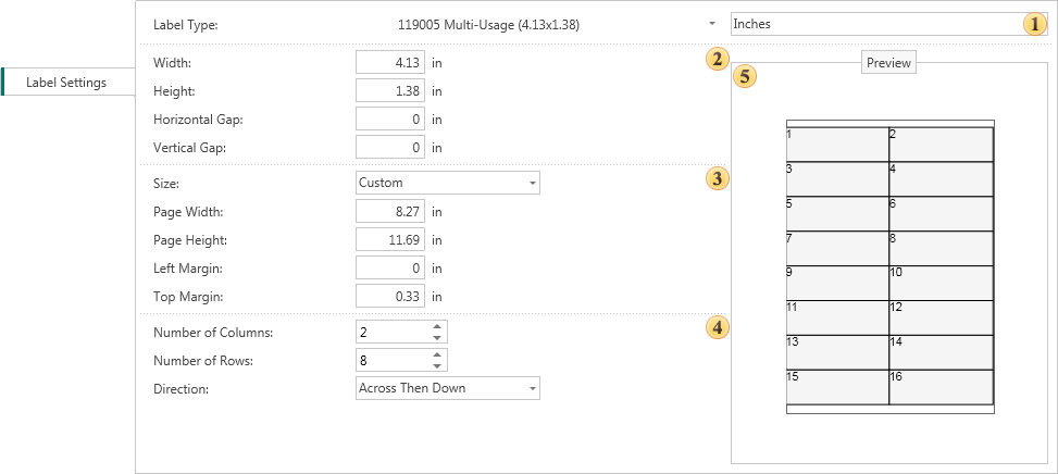 Preview Panel. Preview the labels on the page, certain parameters.