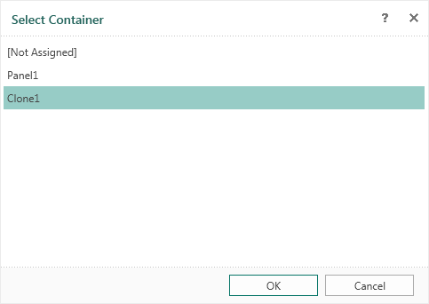 On the right side of the panel and below it you need to display any other component (image, text, chart etc.). In the example above we put the ZIP code on the right and the bar-code below. In the rendered report the list will be interrupted within the borders of the panel. The ZIP code will be on the right and the bar-code below. The list will be continuing to output on the next page. Place the Clone component (call it Clone1) to continue the list on this page, minimizing the empty space and specify the component Panel1 as a source. Selecting the source for the Clone component is carried out in the Select Container form, which will be opened when adding of a clone in a report template or when editing the clone.
