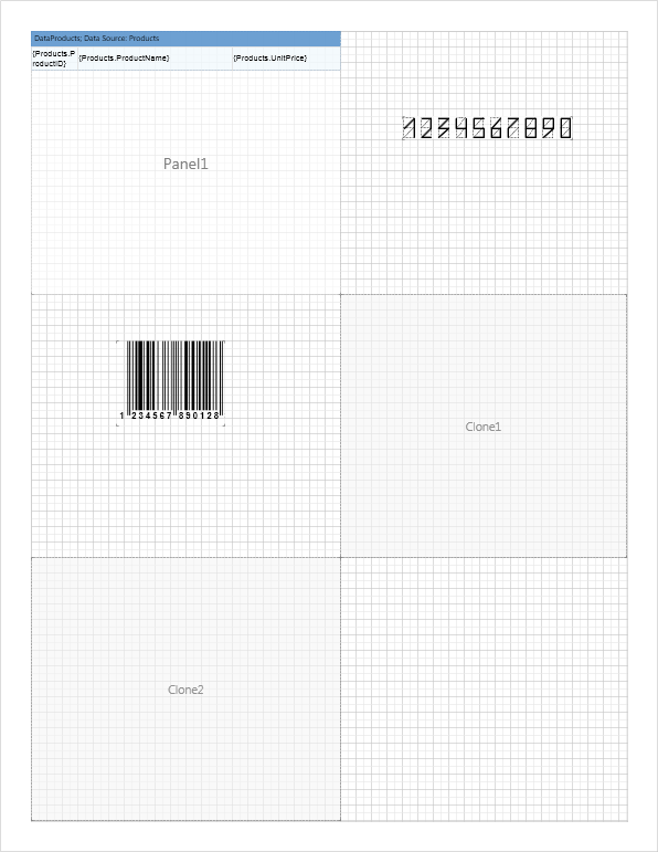 Consider the process of using the clone. Suppose you need to display a list of products in different parts of the report page. To do this, put the Panel component (call it Panel1) somewhere in the report and place in it a DataBand with a list of products.