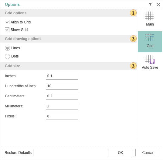 The grid drawing method. Lines or Dots.