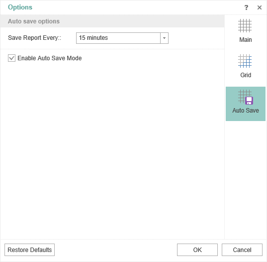- In the Auto Save tab specify settings to automatically save changes: