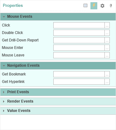 - The Properties Tab or Events is a table with two columns. The first column shows the name of a property or event, the second - values of this property or event. The number of rows depends on the number of properties or events, as one property or event takes one line. In the Properties panel of the context menu there is the Localize Property Grid command. If this command is enabled, the the Properties panel will be translated. If this command is disabled, the names of the properties, events, values and a description of the Properties panel will be in English.