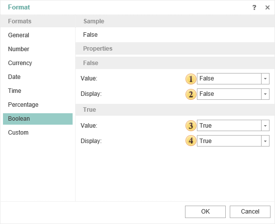 This format is used to format values of the Boolean type.