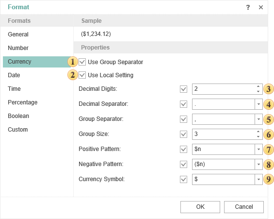 When using the Local settings, currency values are formatted according to the current OS installations.