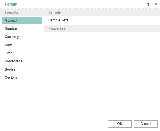 Copy as Markdown General The General format is used to show text and numerical values of any type. No formatting is done in this case.