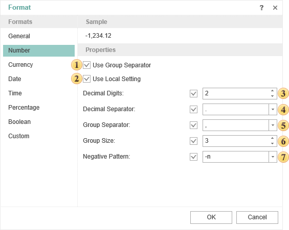 When using the Local settings, numerical values are formatted according to the current OS installations.
