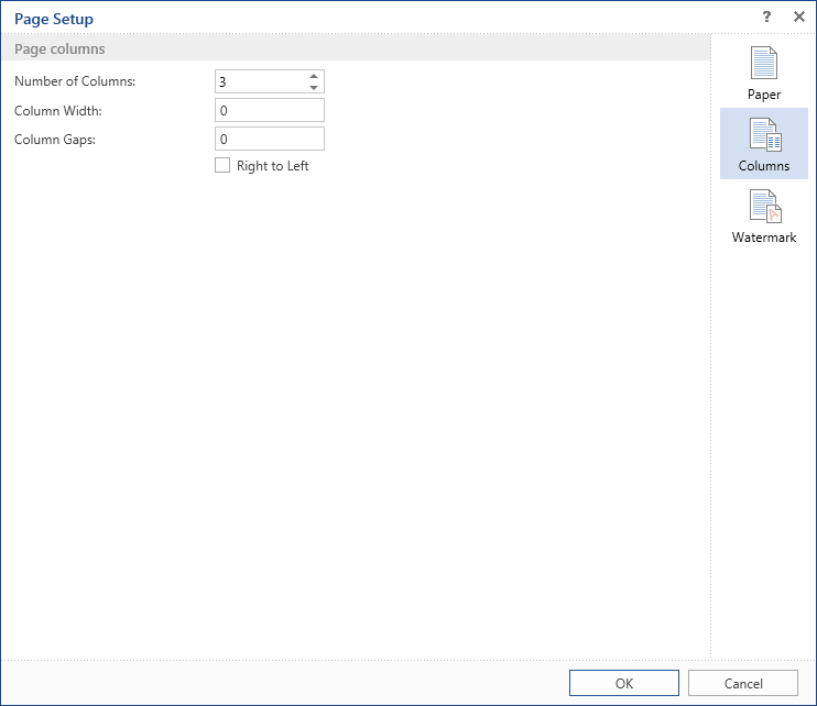 The mode of column positions. By default, the columns are output from left to right. You can change the output order to the from right to left by checking the parameter Right to Left.