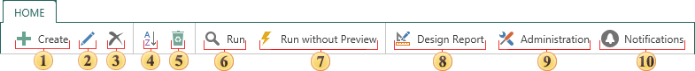 The Run button. When you select this command the report is rendered and loaded into the viewer.