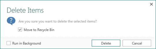 In this window, you need to define the Move to Recycle Bin parameter, and confirm (or undo) this operation. If this option is checked, the deleted item will be moved to the trash and can be restored. If unchecked, the item will be removed forever.