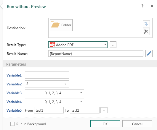- Specify the report parameters. If the report has no parameters, you will need to perform only the previous three steps.
