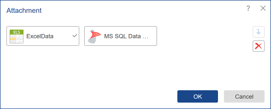 To attach a server element to the report, you need to select the report item and select the Attachment command. It will call a menu in which to specify the items that you want to attach.