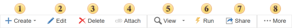 The toolbar contains the basic commands of the report server and its elements. At the same time, depending on the selected element, the list of commands may be different. The picture below shows the toolbar, with the commands for the Report and Dashboards item.