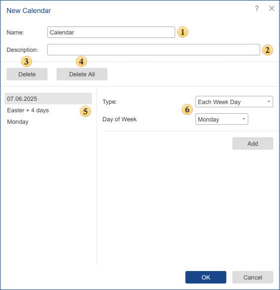 In the field Description, you may specify additional information about the calendar or other information.