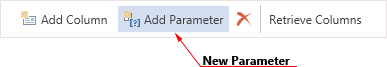 When creating a query, it is possible to use the Parameter object. This object is designed to send additional conditions for selecting data into a query. For example, if you need a query to use a value entered by the user each time the query is executed, you can create a query using parameters. The Parameter object can only be used with SQL data sources. These data sources typically have the Text Query field. To insert a parameter in the query, you must click the New Parameter button. The picture below shows the toolbar, on which the New Parameter button can be found.
