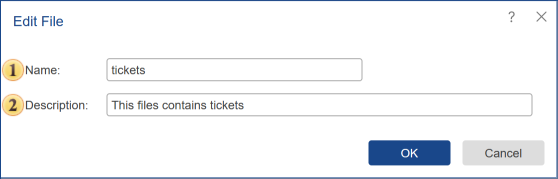 Select File in the items list and click the Edit button on the server toolbar to change the name and description of the current file.