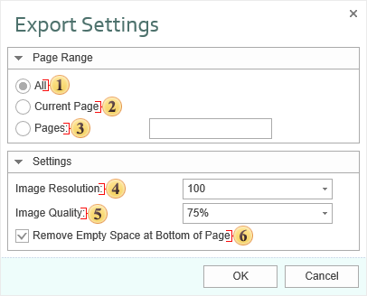 The checkbox Pages has the field. This field specifies the number of pages to be processed. You can specify a single page, several pages (using a comma as the separator) and also specify a range by defining the start page and end page range separated with “-“. For example, 1,3,5-12.